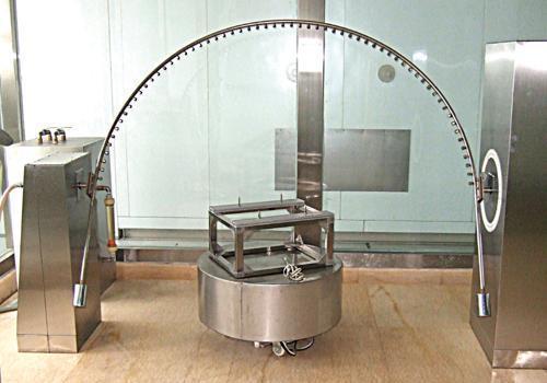 (3)IPX 3 方法名稱:淋水試驗 試驗方法: a。 擺管式淋水試驗 試驗設備:擺管式淋水濺水試驗裝置 試樣放置:選擇適當半徑的擺管,使樣品臺面高度處于擺管直徑位置上,將試樣放在樣臺上,使其頂部到樣品噴水口的距離不大于 200mm ,樣品臺不旋轉。 試驗條件:水流量按擺管的噴水孔數計算,每孔為 0。07 L/min ,淋水時,擺管中點兩邊各 60° 弧段內的噴水孔的噴水噴向樣品。被試樣品放在擺管半圓中心。擺管沿垂線兩邊各擺動 60°,共 120°。每次擺動( 2×120°) 約 4s 試驗時間:連續(xù)淋水 10 min b。 噴頭式淋水試驗 試驗設備:手持式淋水濺水試驗裝置 試樣放置:使試驗頂部到手持噴頭噴水口的平行距離在 300mm 至 500mm 之間 試驗條件:試驗時應安裝帶平衡重物的擋板,水流量為 10 L/min 試驗時間:按被檢樣品外殼表面積計算,每平方米為 1 min (不包括安裝面積),最少 5 min