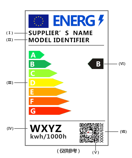 新標(biāo)簽使用從A(最高效)到G(最不高效)的等級,取代從A ++(效率最高)到E(效率最低)的能效等級。提供有關(guān)能耗的信息,以每1000小時kWh表示。