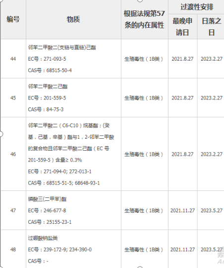 2020年2月7日,歐盟官方公報發(fā)布REACH法規(guī)修訂案REGULATION (EU) 2020/171,正式修訂REACH法規(guī)附件XIV,新增11項授權(quán)物質(zhì)。至此,授權(quán)物質(zhì)更新至共計54項。該法規(guī)從歐盟官方公報發(fā)布第20天開始生效。