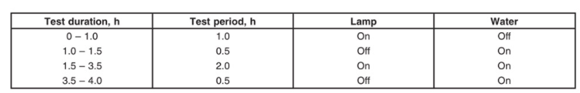 1、如果燈具的使用環(huán)境為Wet localtion,則需要做防水測試,下表為防水測試的時間操作列表。
