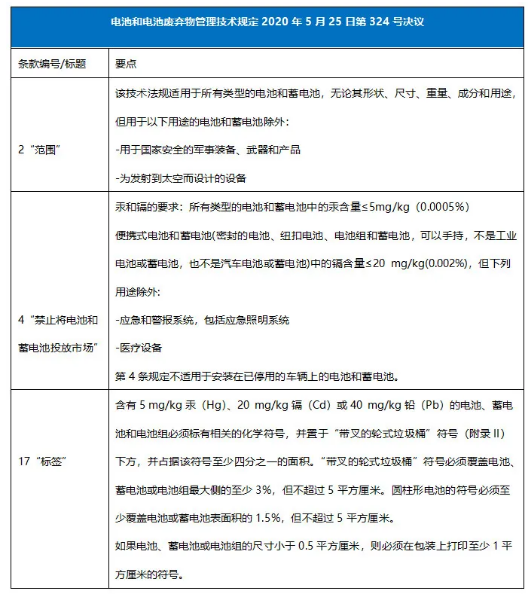 該技術(shù)法規(guī)是仿照歐盟(EU)第2006/66/EC號(hào)指令及其修正案(合并版至2018年7月供參考)制定的。