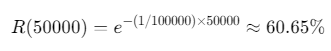 這意味著,該服務(wù)器運(yùn)行5萬(wàn)小時(shí)后,仍有約60%的概率未發(fā)生故障。