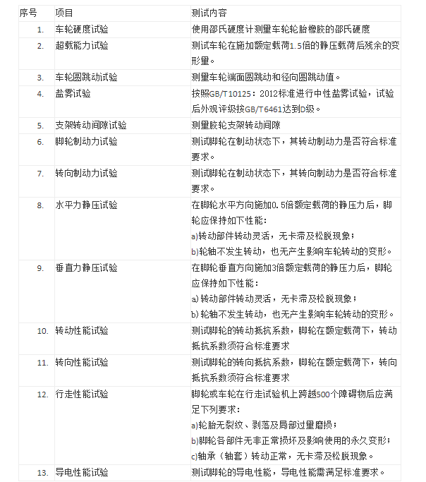 測試標(biāo)準(zhǔn):GB/T14687-2011工業(yè)腳輪和車輪二.范圍:
