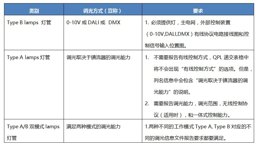 2021年3月11日,由于DLC V5.1對(duì)于燈管的強(qiáng)制性調(diào)光要求的補(bǔ)充,DLC同步對(duì)相應(yīng)燈的調(diào)光要求作了細(xì)小的更新。此次更新主要對(duì)宣稱通過使用有線方式調(diào)光的Type B調(diào)光燈增加證明文件要求。