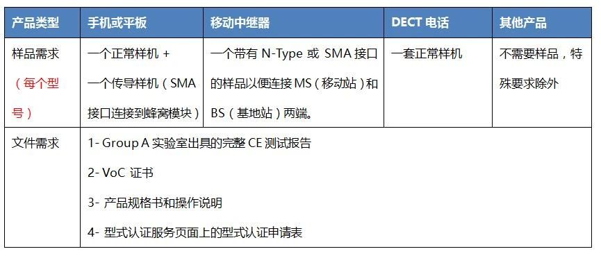 型式認(rèn)證的樣品和文件要求如下: