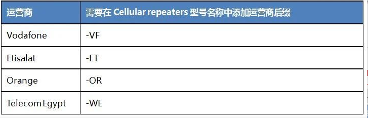1) 必須在移動中繼器型號名稱中添加代表移動運(yùn)營商的字母后綴,如下所示:以下要求: